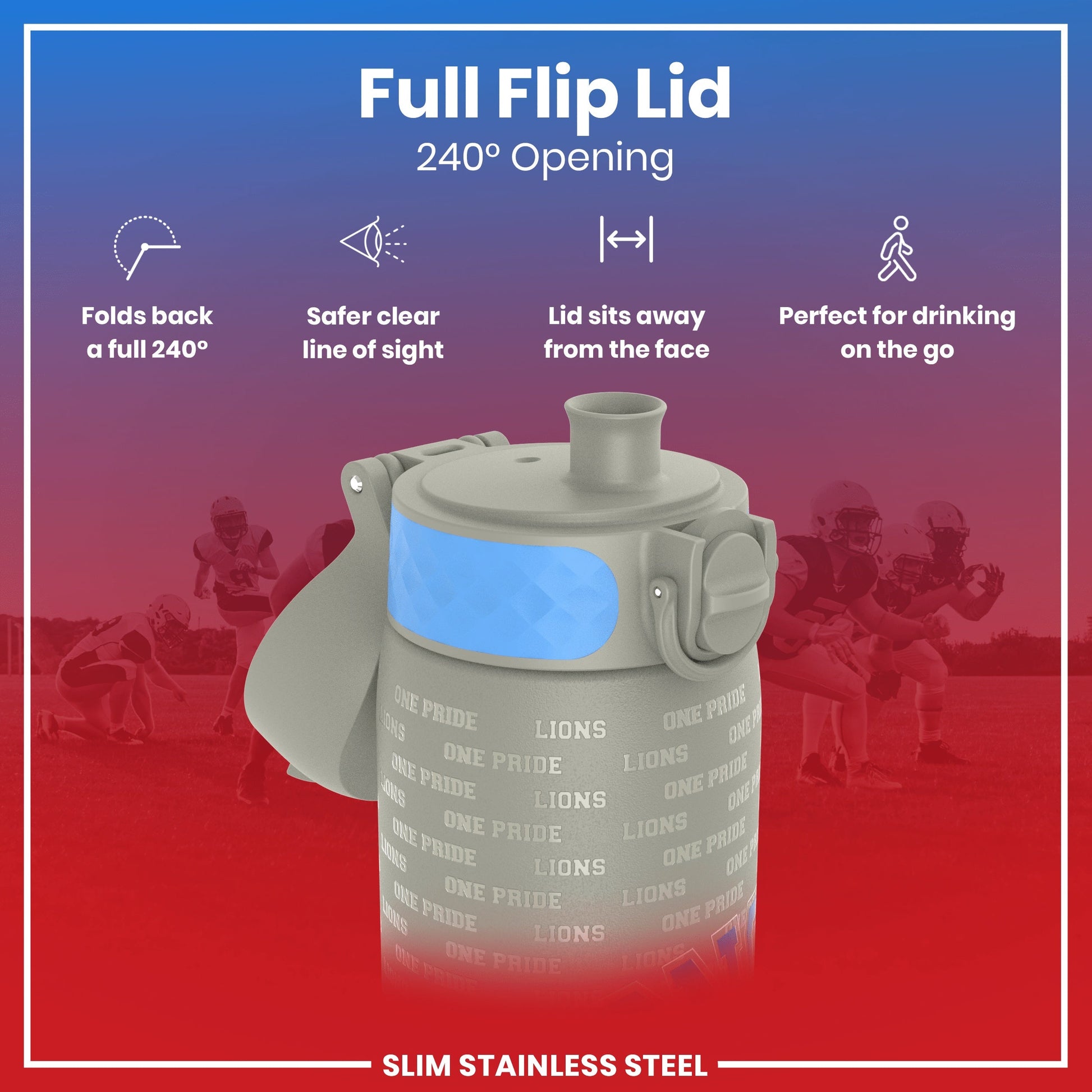 Leak Proof NFL Water Bottle, Stainless Steel, Detroit Lions, 600ml (20oz)